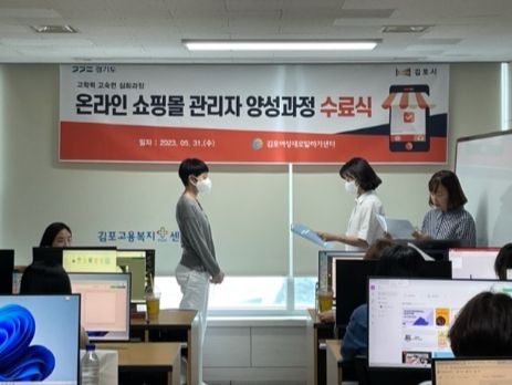 [제주교통복지신문 김강석 기자] 김포시는 지난 31일 김포여성새로일하기센터에서 강사 및 훈련생 등 20여 명이 참석한 가운데 ‘온라인 쇼핑몰 관리자 양성과정 수료식’을 개최했다.