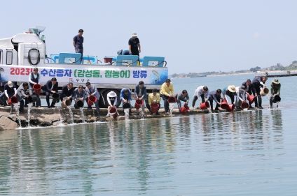 [제주교통복지신문 김강석 기자] 전남 무안군은 지난 5월 31일 수산자원 조성사업을 위해 현경면 홀통항, 월두항을 비롯한 청계면 구로항 등 3개소에 고부가가치 어종인 감성돔 종자 28만 3천 마리와 점농어 종자 14만 4천 마리를 방류했다.