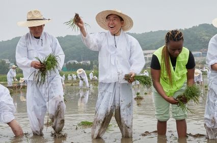 소를 이용한 전통 써레질 시연에 이어 유치원생부터 대학생, 모내기가 일상이었던 어르신들까지, 전 세대를 아우른 1200여 명의 참가자들은 손으로 직접 모를 옮겨 심는 ‘손 모내기’를 체험하며 구슬땀을 흘렸다.