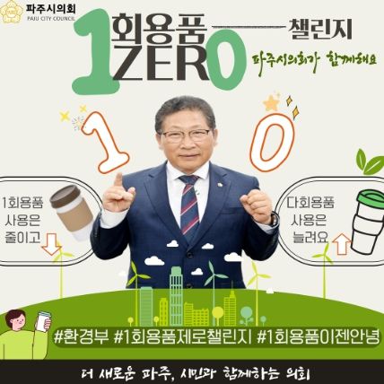 [제주교통복지신문 김강석 기자] 파주시의회 이성철 의장이 2일 1회용품 사용 줄이기 실천을 다짐하는‘1회용품 제로 챌린지’에 동참했다.