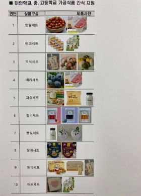 군은 지난 3월 중·고등학교 학생들에게 선호도 품목을 조사 후 반영했으며, 11월까지 중학교 7개교(827명), 고등학교 4개교(1,057명), 미인가 대안학교(164명) 학생들에게 매주 제공할 예정이다.