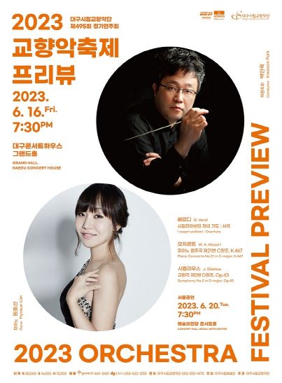 [제주교통복지신문 김강석 기자] 대구시립교향악단 '제495회 정기연주회'가 오는 6월 16일 오후 7시 30분, 대구콘서트하우스 그랜드홀에서 열린다. 이날 공연은 서울 예술의전당에서 개최되는 ‘2023 교향악축제’ 참가를 앞둔 대구시향의 연주를 대구에서 미리 만나볼 수 있는 뜻깊은 무대이다.