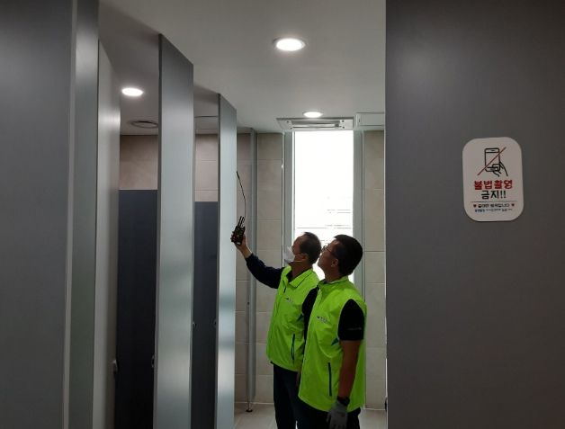 청사관리팀과 방재센터 관계자로 구성된 점검반은 불법 촬영카메라가 설치되기 쉬운 남녀 화장실 내부 환풍기 및 칸막이 상단, 변기, 전기콘센트, 조명 주변 등을 꼼꼼하게 살폈으며, 점검 결과 단 1건도 설치되지 않은 것으로 확인됐다.
