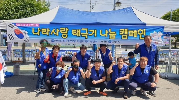 한편, 한국자유총연맹 사천시지회는 일반 시민을 대상으로 태극기를 아끼고 나라를 사랑하는 마음을 고취시키고자 매년 태극기 나눔 행사를 실시하고 있다.