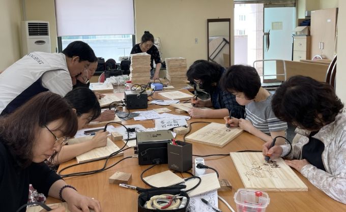 조원2동 행정복지센터는 지난달 31일 주민 20여 명이 참여하는 ‘인두화 작품 교실’을 열어 둘레길을 장식할 인두화 작품을 준비하고 있다. 작품에는 보는 이에게 위로와 희망을 전하는 글귀나 그림을 담을 계획이다.