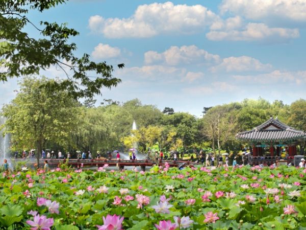 궁남지는 부여 시가지 남쪽에 위치한 백제시대의 별궁에 딸린 우리나라 최초의 인공연못으로 '삼국사기'에 “백제 무왕 35년(634) 궁의 남쪽에 못을 파 20여리 밖에서 물을 끌어다가 채우고, 주위에 버드나무를 심었으며, 못 가운데는 섬을 만들었는데 방장선산(方丈仙山)을 상징한 것”이라는 기록이 있다.