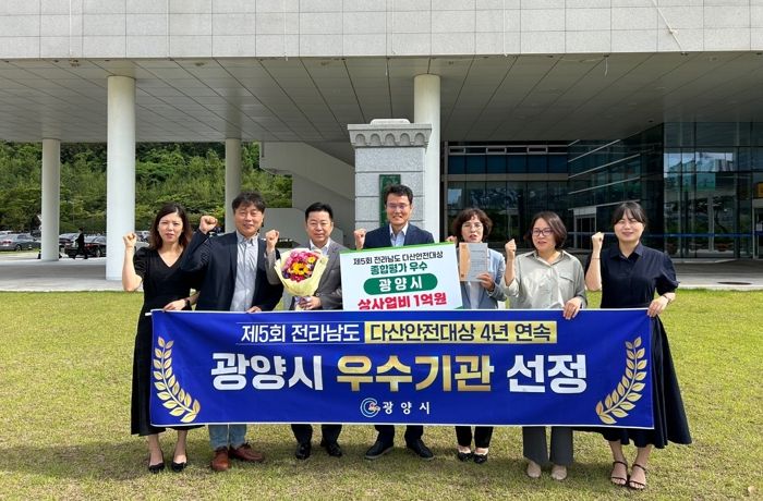 [제주교통복지신문 김강석 기자] 광양시가 전라남도 주관 제5회 다산안전대상 평가에서 우수기관으로 선정돼 2일 우수기관 상패와 상사업비 1억원을 수상했다고 밝혔다.