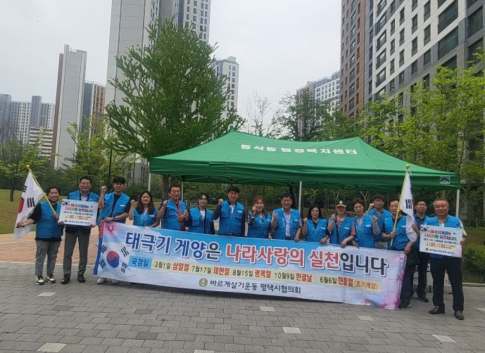 [제주교통복지신문 김강석 기자] 평택시 바르게살기운동 동삭동위원회 위원들은 지난 6월 1일 동삭동 평택센트럴자이3단지에서 현충일을 맞아 순국선열과 호국영령에 대한 추모와 나라사랑하는 마음을 되새기고자 주민들에게 태극기 나눔 행사를 펼쳤다.