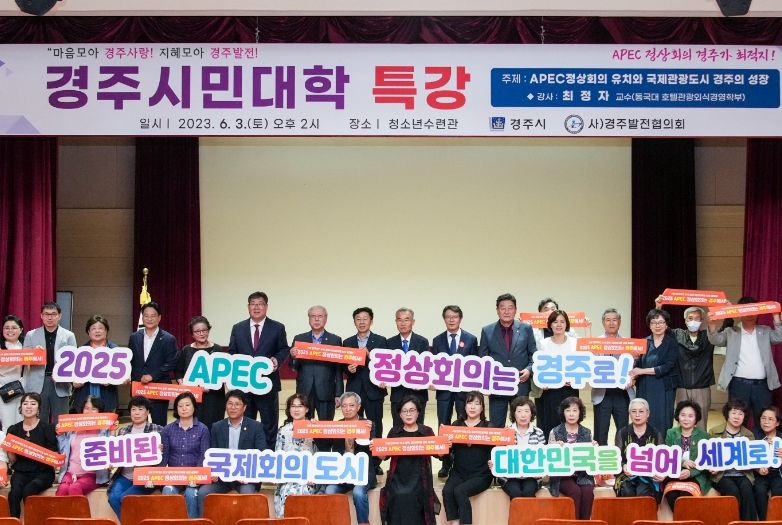 [제주교통복지신문 김강석 기자] 경주시는 경주시민대학에서 2025 APEC 정상회의 경주 유치를 위한 특강을 열어 경주 유치의 당위성을 강조했다.