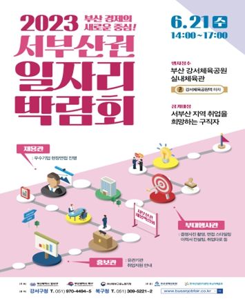 [제주교통복지신문 김강석 기자] 부산 북구는 구직자에게는 새로운 취업의 기회를 제공하고 기업의 구인난을 완화하기 위해 오는 6월 21일 강서체육공원 실내체육관에서 ‘2023 서부산권 일자리 박람회’를 개최한다고 밝혔다.