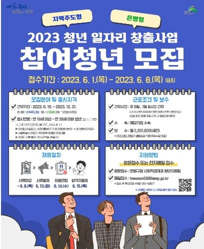 [제주교통복지신문 김강석 기자] 서울 은평구는 청년 구직난 해소를 위한 지역주도형 연계 ‘2023년 청년 일자리 창출사업’에 참여할 추가 모집한다.