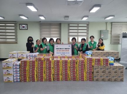 성품 중 감자와 멸치는 ‘대청동 행복나누기’가 마련했으며, 컵라면과 세탁세제는 대청탑플러스마트 후원했다.