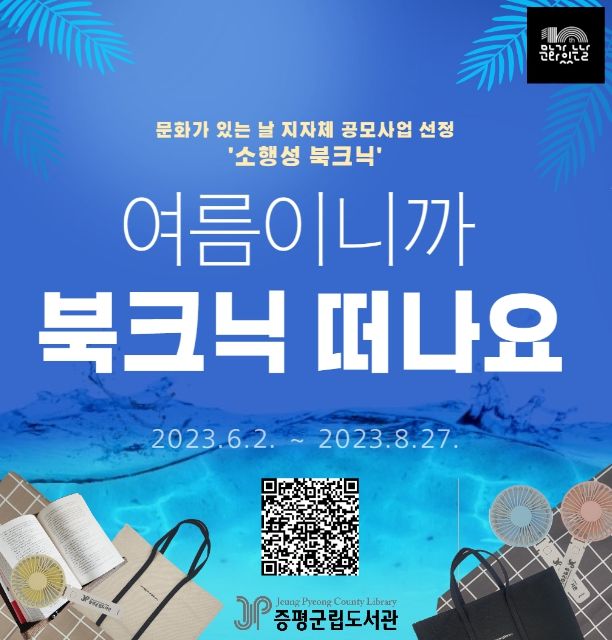 이번 프로그램은 3월부터 12월까지 사계절 내내 추진하며, 보강천 미루나무 숲과 증평군립도서관 일원에서 편안하게 독서소풍을 즐길 수 있도록 참여자에게 북꾸러미(에코백, 돗자리 등)를 제공한다.
