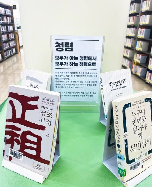 시립도서관 관계자는 “도서관에서 청렴 도서를 함께 읽고 독서 후기를 나누며 청렴에 대한 생각을 공유하고, 실천함으로써 지역사회의 청렴의식이 한층 높아지길 바란다”고 전했다.
