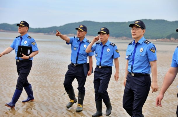 하늘바다 파출소를 찾은 김 청장은 “외부에서 갯벌을 찾아 해루질을 하는 관광객은 바닷가 지형 특성과 물때를 잘 모르고 무리한 활동을 하다가 사고가 나는 경우가 많다”고 지적하고, “갯벌 고립사고가 많이 발생하는 취약 시간에 경찰력과 장비를 동원한 집중적인 순찰을 실시하고, 지자체, 소방, 군 등과의 협조 체제를 재점검하여 인명 사고 예방에 최선을 다해달라”고 당부했다.