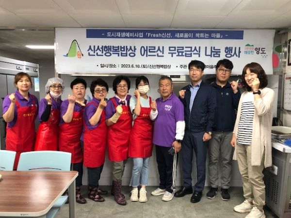 신선행복밥상 어르신 무료급식 나눔 사업은 2016년 신선동 주민들이 힘을 모아 시작한 마을공동체 봉사 사업으로 평일 염가의 신선행복밥상 중식 판매수익금으로 매주 토요일 마을 어르신을 대상으로 점심식사를 대접하는 사업이다. 올해는 신선마을도시재생예비사업과 연계하여 진행된다.