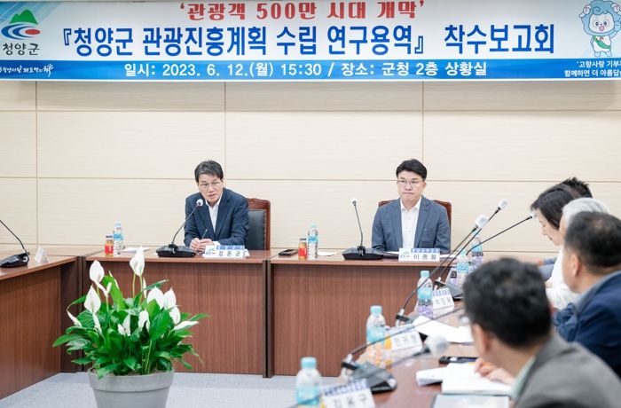 이 연구용역은 군정 5대 중점과제 중 관광객 500만 시대를 위한 종합 계획과 민선 8기 공약인 ‘특별한 청양’ 관광브랜드 확립 및 차별화된 홍보 마케팅을 추진하기 위한 것으로 5개년 계획으로 완성될 전망이다.
