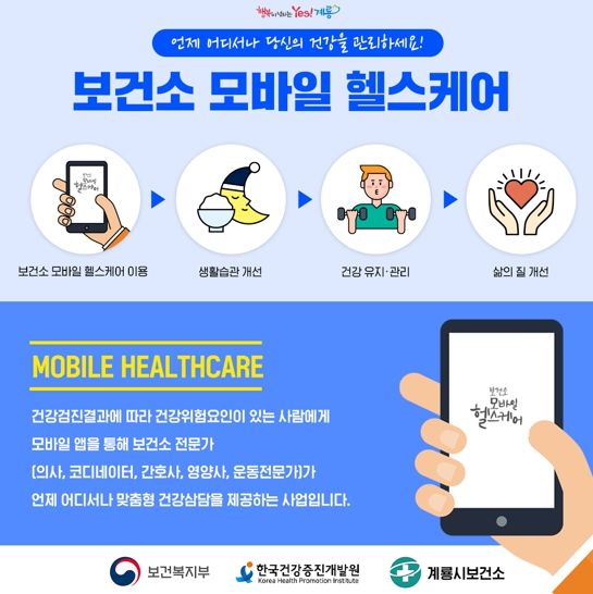 [제주교통복지신문 김강석 기자] 계룡시가 스마트폰을 활용한 모바일 건강관리(헬스케어) 운영에 나선다.