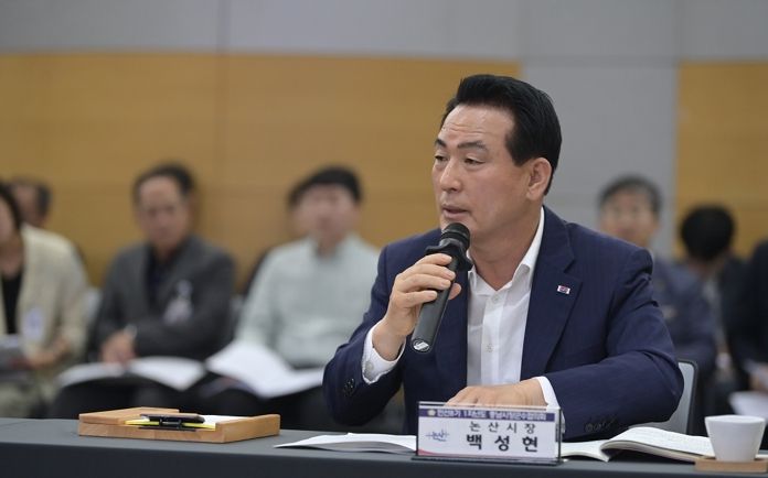 제호]지난 12일 천안시청 대회의실에서 열린 충남시장ㆍ군수협의회 민선 8기 5차 정기회의에 참석한 백성현 논산시장이 “농가 인력난을 해소하기 위해서는 지자체 주도의 공공형 계절근로자 사업 운영 폭을 늘려야 한다”는 뜻을 밝혔다.
