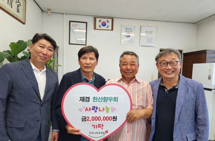 재경 한산향우회는 한산면 출신의 서울 향우로 구성돼 있으며, 어려운 이웃을 위해 후원금을 지원해 지역 나눔 문화 확산에 귀감이 되고 있다.