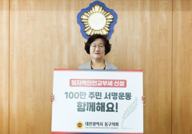 [제주교통복지신문 김강석 기자] 대전 동구의회 박영순 의장이 원자력안전교부세 신설을 촉구하는 릴레이 캠페인에 동참했다.