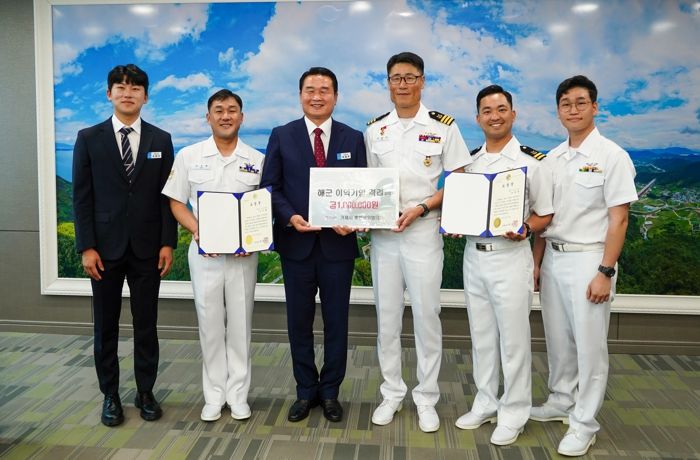 [제주교통복지신문 김강석 기자] 거제시는 지난 12일 해군 이억기함과 거제시의 자매결연 21주년을 기념하고 장병 사기 진작을 위하여 이억기함 장병 2명에게 표창장 수여 하고, 거제시방위협의회에서도 위문금을 전달했다.