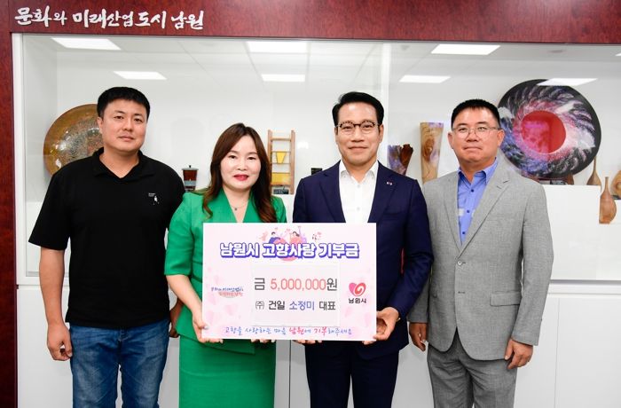 [제주교통복지신문 김강석 기자] 주식회사 건일 소정미 대표이사가 6월 12일 남원시를 직접 방문해 고향사랑기부금 최고액인 500만원의 통 큰 기부를 했다.