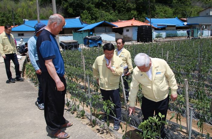 [제주교통복지신문 김강석 기자] 황인홍 무주군수는 지난 12일 안성면(진도리, 장기리)과 적상면(삼유리, 삼가리), 부남면(고창리, 장안리) 지역의 우박피해 농가를 찾아 농가를 위로하고 현장 상황을 살폈다.