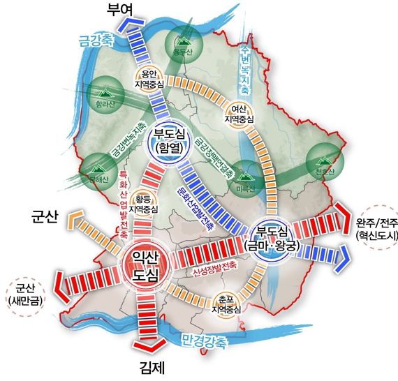 이를 토대로 생활권별 중심지 기능 강화를 통한 지역 균형 발전과 익산을 중심으로 주변 도시와의 상생발전과 유기적 연계체계를 구축해 나갈 방침이다.