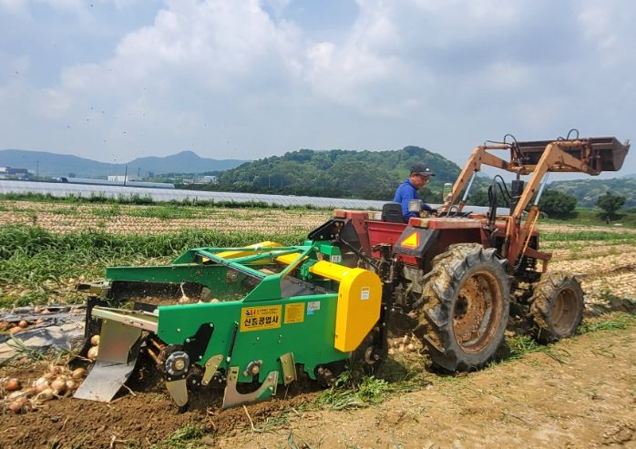 [제주교통복지신문 김강석 기자] 이천시는 12일 호법면에서 양파 수확 기계화 현장 시연회를 열었다. 이날 시연회는 이천시가 주관하고 이천시친환경농업인연합회가 주최하여 이천시 관계 공무원과 권혁준 호법농협조합장, 농업인 등이 참석한 가운데 진행됐다.