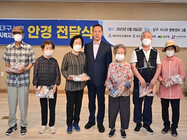 [제주교통복지신문 김강석 기자] 대구광역시 남구청은 지난 9일, 대구지구JC특우회, 대구광역시 안경사회, 대구보건대학교의 후원으로 시력 문제로 불편함을 겪고 계시는 어르신 96명에게 안경을 제작·전달했다고 밝혔다.
