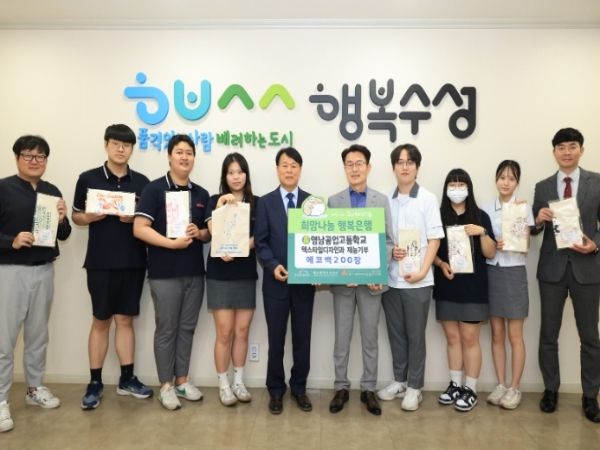 백동현 수성구 부구청장은 “학생들이 직접 제작한 에코백을 전달해 주셔서 감사하다”라며 “전달해 주신 물품은 복지위기 가구 발굴에 활용하고 관내 아동시설에도 배부하겠다”라고 말했다.