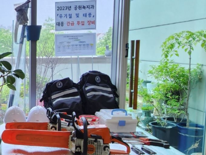 시는 지난 5월까지 산림에 설치된 사방댐과 배수로 등을 일제 점검하여 도복목이나 낙엽 등을 제거했고, 6월 초에는 보관중인 수방자재와 응급복구장비를 점검 완료했다.