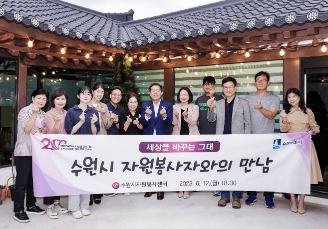 수원시자원봉사센터가 12일 저녁 행궁동의 한 음식점에서 연 ‘수원시 자원봉사자와의 만남’에 참석한 이재준 수원시장은 “이웃을 위해 헌신하는 자원봉사자들의 활동을 시민들에게 널리 알려 자원봉사자들이 반짝반짝 빛날 수 있게 하겠다”며 “빛나는 자원봉사자들의 영향을 받은 다른 시민들이 자원봉사에 참여하는 선순환이 일어날 것”이라고 말했다.