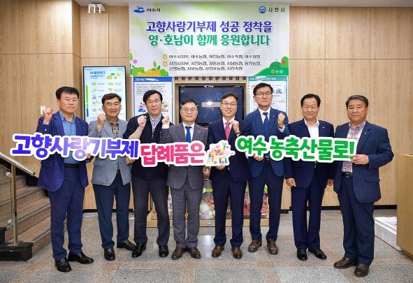 [제주교통복지신문 김강석 기자] 여수시 고향사랑 기부제에 지난 12일 NH농협은행 경남 사천시지부 임직원 100여명이 동참하면서 영호남을 잇는 기부로 눈길을 끌고 있다.