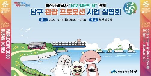 [제주교통복지신문 김강석 기자] 부산광역시 남구는 오는 15일 9시 남구청 1층 대강당에서 남구 쿠폰북 참여 업체를 대상으로 부산관광공사 남구 방문의 달(7월 ~ 8월) 연계 관광 프로모션 안내 설명회를 개최한다.