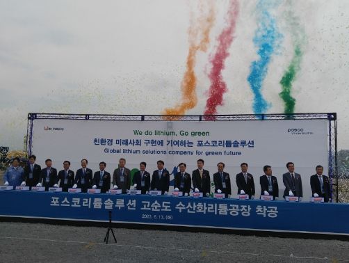 이날 착공식에는 최정우 ㈜포스코홀딩스 회장과 박희석 포스코리튬솔루션(주) 대표 등 포스코그룹 임직원과 고객사, 전남도와 순천시, 광양시 관계 공무원 등 100여 명이 참석했다.