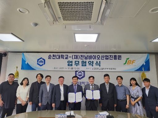 [제주교통복지신문 김강석 기자] (재)전남바이오산업진흥원이 12일 순천대 중회의실에서 국립 순천대학교와 국내·외 바이오 인력양성을 위한 업무협약을 맺었다.