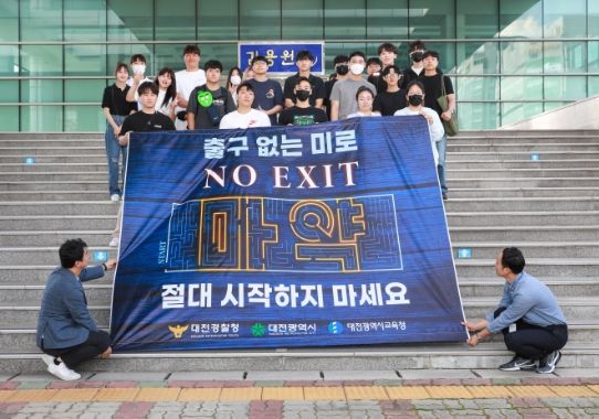 대전경찰청은, 일상생활에서 쉽게 접할 수도 있는 마약이 범죄라는 인식과 호기심적 접근에 대한 경각심을 제고하기 위해 대전시민이 자발적으로 참여하는 마약근절 릴레이 캠페인과 더불어 유명 연예인과 함께하는 마약예방 'NO EXIT'릴레이 캠페인도 함께 전개하고 있다고 밝혔다