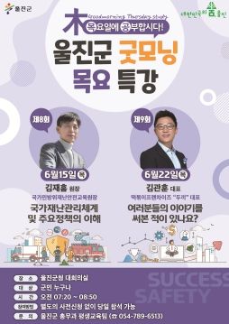 [제주교통복지신문 김강석 기자] 울진군 굿모닝 목요특강은 6월에도 계속된다. 3월부터 시작한 굿모닝 목요특강은 5월까지 총 7회에 걸쳐 농업, 관광, 도시계획 분야의 전문가를 초빙하여 강의를 진행했고, 매회 군민들의 높은 호응에 힘입어 진행되고 있다.