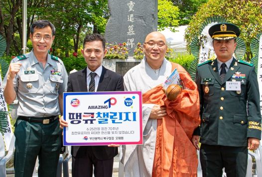 [제주교통복지신문 김강석 기자] 부산 북구 오태원 구청장이 지난 9일 화명동 호국영령 추모비 일원에서 개최한 제25회 호국영령위령재에서 6·25 참전영웅들을 기리는 ‘6·25 참전유공자 땡큐 챌린지’에 참여했다.