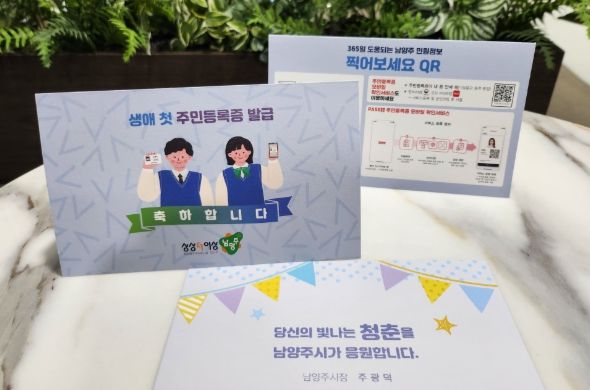 [제주교통복지신문 김강석 기자] 남양주시는 생애 첫 주민등록증을 발급받는 청소년들을 위해 축하와 응원의 마음을 담은 축하 카드를 제작해 주민등록증과 함께 전달하고 있다고 13일 밝혔다.