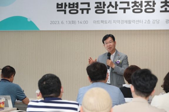 [제주교통복지신문 김강석 기자] 박병규 광산구청장이 13일 지역경제활력센터에서 광산구 노인의료복지시설 연합회를 대상으로 민선8기 주요 구정 비전을 공유하고 소통하는 시간을 가졌다.