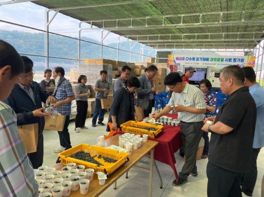 이에 경상남도농업기술원은 2021년부터 국내 과일 소비 추세에 발맞춰 ‘베리류 다수확 용기재배 과원 모델 시범사업 평가회’를 산청군에서 개최하였다. 이날 평가회에는 농업관계자 및 시범사업 대상 농업인 40명을 대상으로 사업설명, 기술교육, 블루베리 품평 및 현장견학과 토론회를 진행하였다.