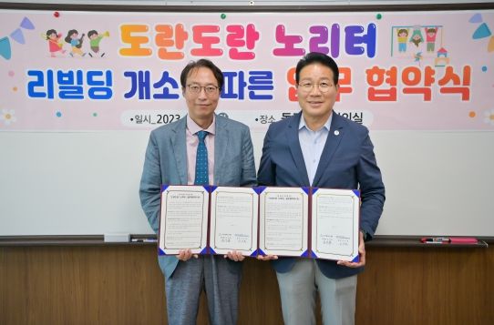 동구종합사회복지관 내 완공된 『도란도란 노리터』는 기존 장난감 도서관 활용하여 자유놀이터, 초등룸, 파티룸 등으로 리빌딩 하여 개소했으며, 이번 업무 협약을 통해 아동들이 스스로 즐기고 놀이를 찾고, 지역주민 모두에게 항상 열려있는 새로운 놀이터로 자리매김할 예정이다.