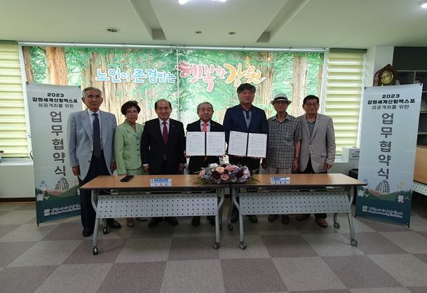 [제주교통복지신문 김강석 기자] (재)강원세계산림엑스포 조직위원회는 『2023 강원세계산림엑스포(2023.9.22.~10.22.)』 성공 개최를 위하여 6월 13일 14시 30분 강원노인복지회관(춘천 근화동)에서 대한노인회 강원특별자치도연합회(회장 이건실)와 업무협약을 체결했다.