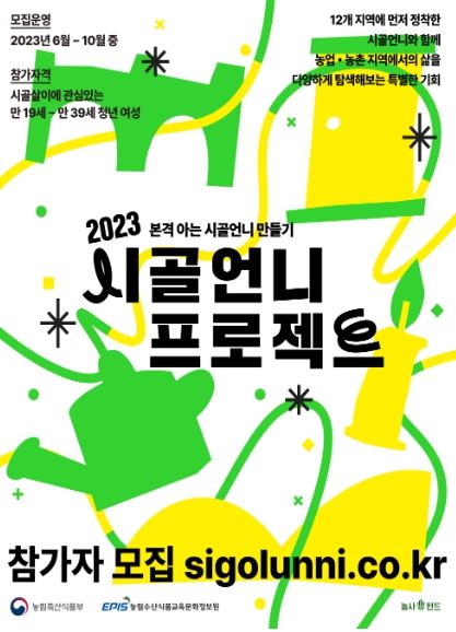 [제주교통복지신문 김강석 기자] 농림축산식품부는 농촌정착에 관심을 갖고 있는 만 19~39세의 청년 여성 250명을 대상으로 '2023 청년여성 농업농촌탐색교육 프로그램(시골언니 프로젝트)'을 7월에서 10월까지 본격적으로 운영한다.
