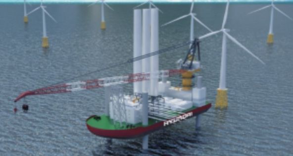 해상풍력 전용 설치선은 기자재 운반 바지선과 설치 바지선을 별도로 운용하던 기존 방식과 달리 1척으로 운반과 설치를 일괄 수행할 수 있도록 설비를 일체화시킨 선박으로, 풍력터빈을 더욱 안정적으로 설치할 수 있을 뿐만 아니라 작업 속도도 기존 방식 대비 50% 이상 향상(월 3기→ 4.5기 설치)될 것으로 기대된다.