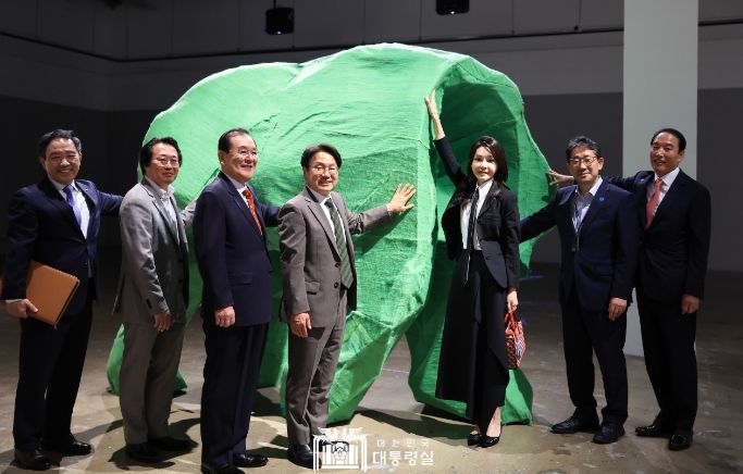 김 여사는 엄정순 작가의 ‘코 없는 코끼리’와 유마 타루 작가의 ‘천과 같은 혀’ 등 광주비엔날레 전시관의 작품들을 둘러봤다. 또한 광주비엔날레를 통해 대한민국의 국격을 높이고 문화예술 발전에 기여하고 있는 행사 관계자들을 일일이 만나 격려했다.