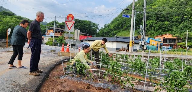 군은 이런 어려움을 해소하기 위해 지난 14일 가곡면의 한 피해 농가를 찾아 일손을 보탰다.